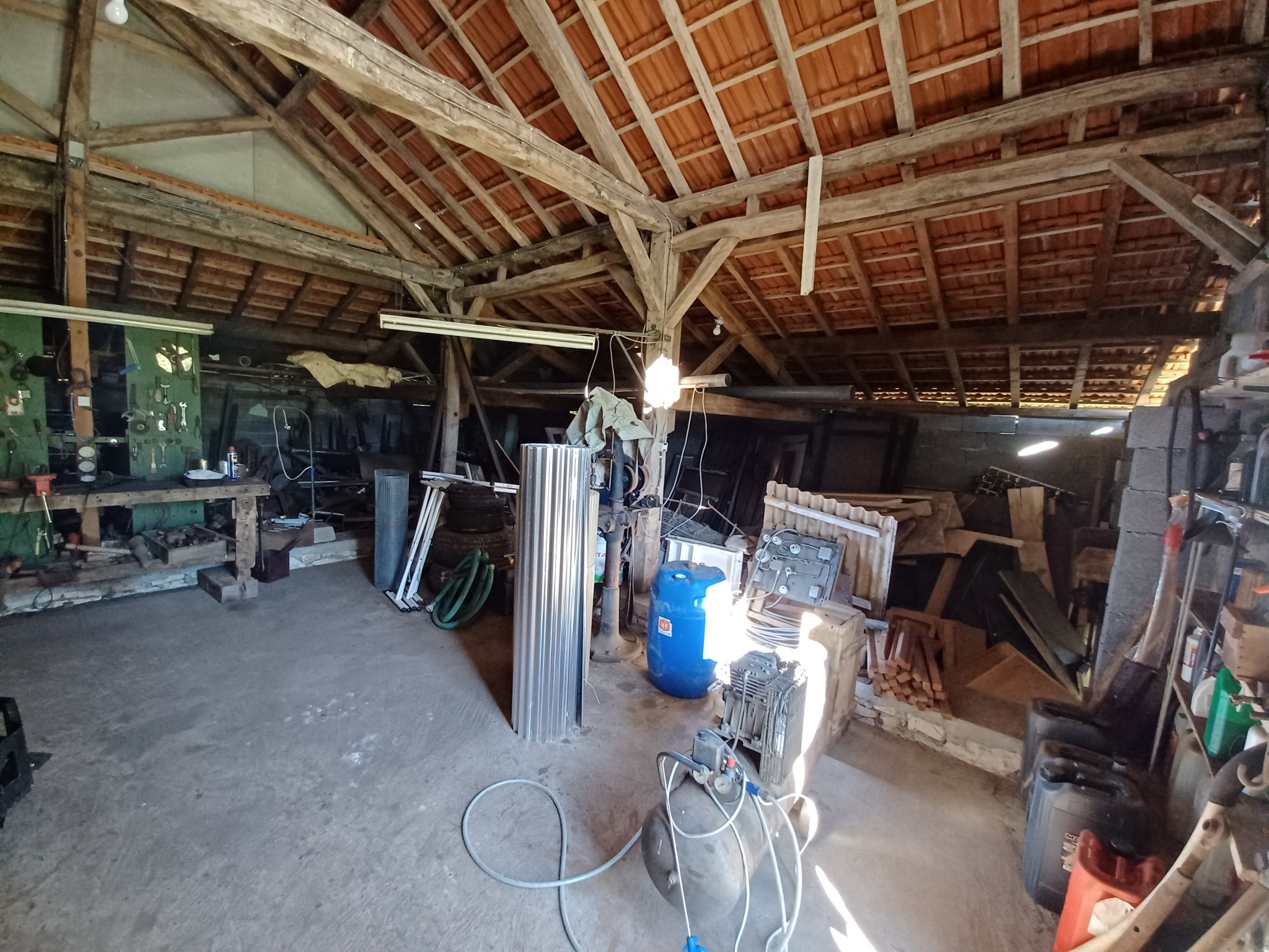 Ensemble de batiments anciens comprenant une Grange en pierre de 250 m2 au sol, en bon état, à amménager avec une Maison ancienne à rénover, sur 2 000 m2 de terrain avec un Garage indépendant de 108 m2.