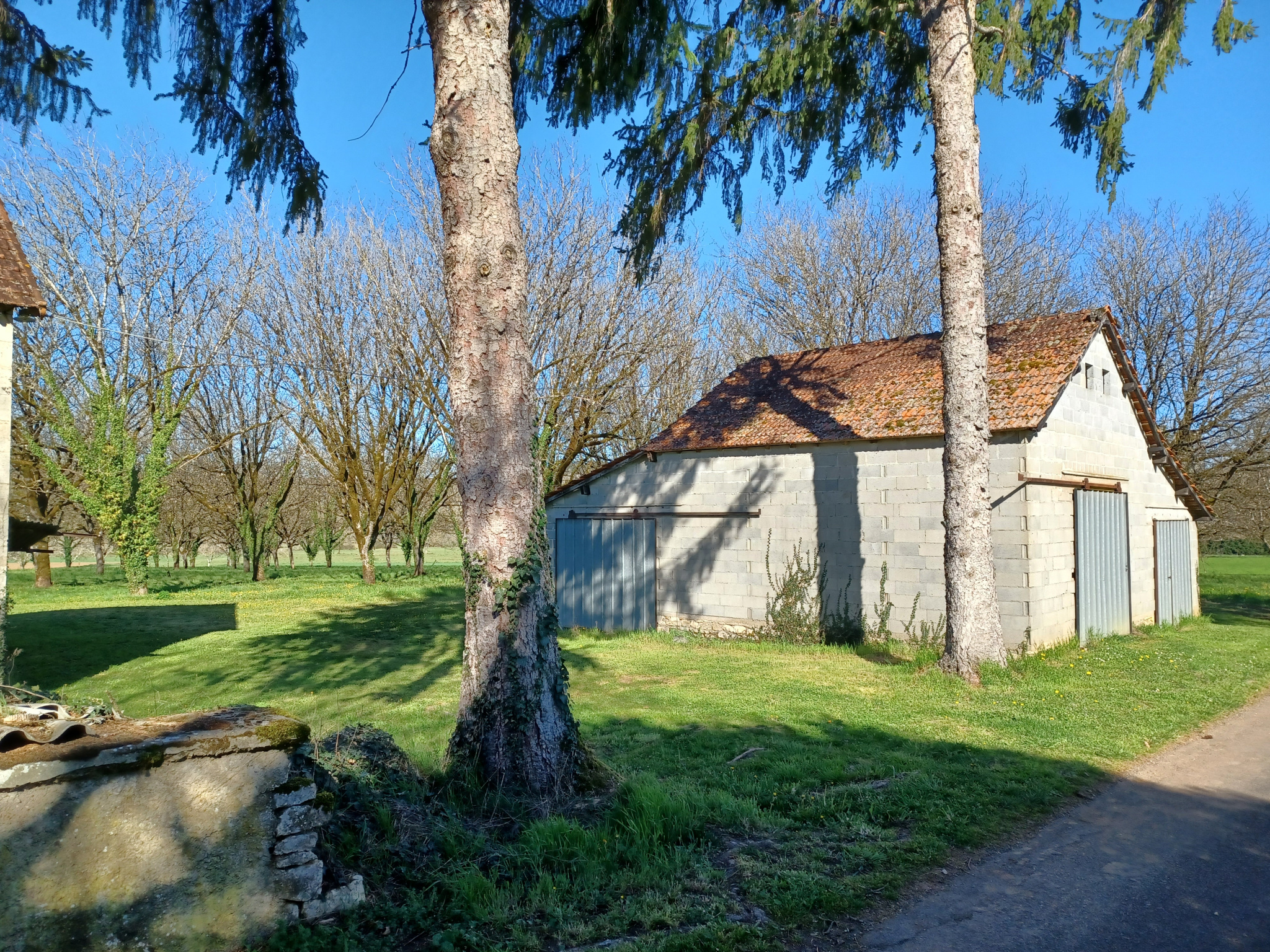 Ensemble de batiments anciens comprenant une Grange en pierre de 250 m2 au sol, en bon état, à amménager avec une Maison ancienne à rénover, sur 2 000 m2 de terrain avec un Garage indépendant de 108 m2.