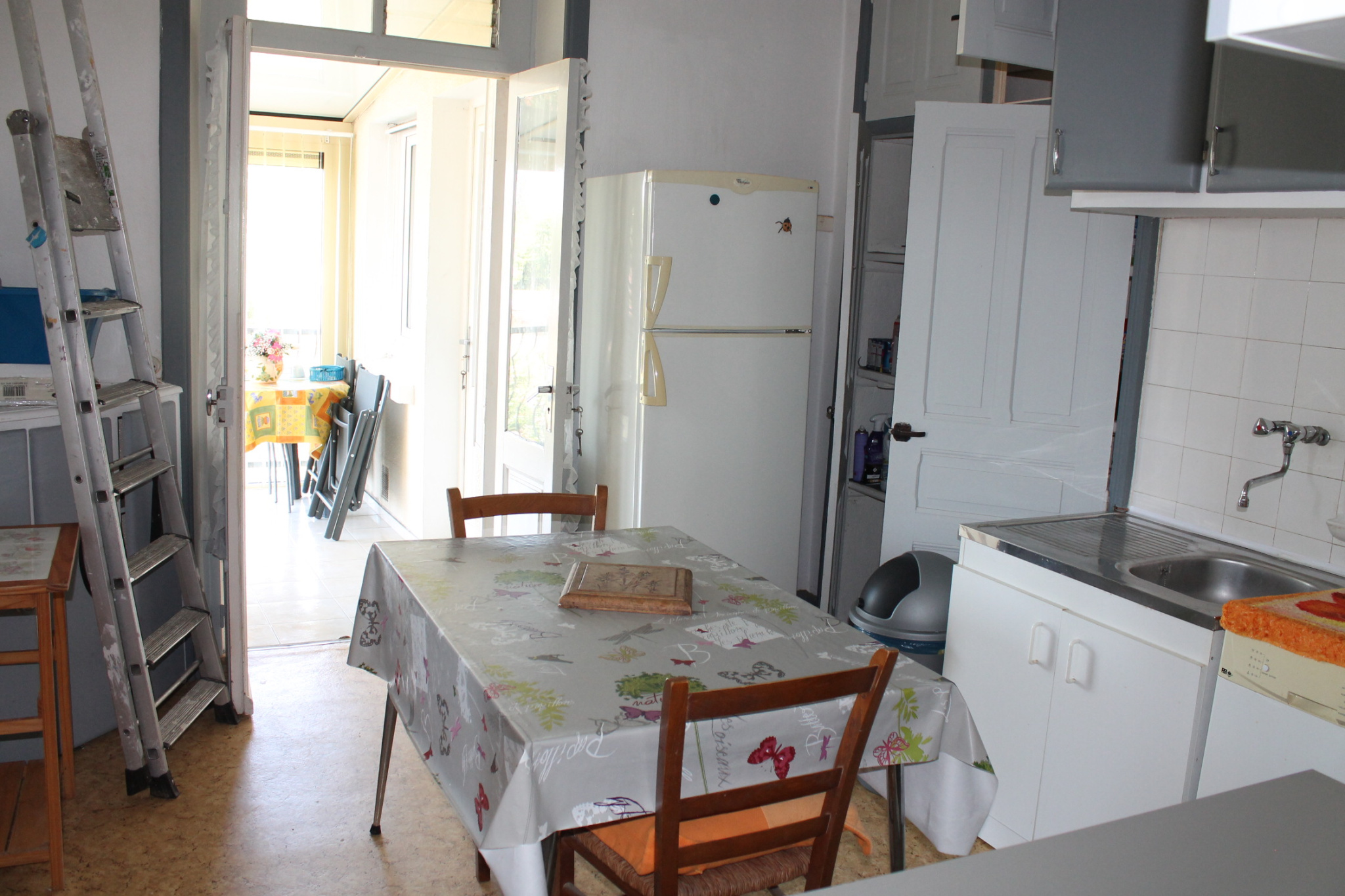 A l'étage deux chambres , une ancienne cuisine et séjour , salle de bains , véranda et terrasse .